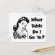 Voici un design graphique amusant rétro qui présente une femme se demandant "À quelle table dois-je aller?. Ce design convient bien aux groupes Bunco, aux serveurs, aux serveuses, aux restaurants, aux bars ou simplement pour s'amuser.