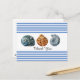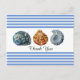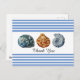Cette carte postale de style plage comporte trois coquillages sur un fond rayé bleu et blanc. Il y a un espace pour une salutation. Achetez comme indiqué avec le message de remerciement ou ajoutez votre propre texte tel que "Sauver la date" ou "Joyeux Anniversaire" Le choix vous appartient. Il y a une salutation au verso qui peut être personnalisée avec vos propres mots.