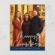 Joyeux Noël. Célébrez la saison avec cette photo de famille, script mignon, carte postale de la marine Blue layover Il est entièrement personnalisable et personnalisé avec vos propres messages de voeux. Veuillez ajouter votre adresse de retour pour faciliter l'envoi. Il est simple, facile, mais moderne minimaliste et festif. C'est la carte postale parfaite pour envoyer vos souhaits de vacances. Calligraphie de Layover.