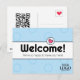 Bienvenue à de nouveaux clients, clients ou employés avec cette carte postale de bienvenue simple et élégante Sky Blue Business Welcome de Zazzle! Cette carte postale élégante d'inspiration rétro offre un code QR personnalisable ainsi que de l'espace pour votre logo et des messages personnalisés à l'avant et à l'arrière. Disponible en papier mat ou semi-brillant. Vendu avec ou sans enveloppes par la carte ou en quantités de 2-2000. Légèrement revêtu et le coeur estampillé sur le dos pour une touche d'amour supplémentaire et votre adresse d'écriture pratique. Idéal pour faire un don lors d'événements ou ajouter à des paniers cadeaux ou des kits de bienvenue. Économisez lorsque vous achetez plus - pas de minimums! Garantie de satisfaction 100%.