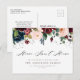 Annoncez votre nouvelle maison à votre famille et à vos amis avec cette carte postale moderne avec son script et son bleu bordeaux et ses fleurs bleu marine.
