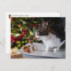 Carte Postale Acorn Elf donne cadeau de Noël au chat