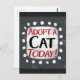 "Adoptez un chat aujourd'hui" est un design de texte mignon en gris avec du texte noir et rouge. Il est placé sur une forme d'accent blanc et entouré de points blancs mignons.