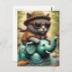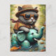 Carte Postale Adorable Chat avec sur éléphant Floatie