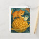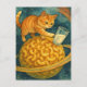 Un chaton au gingembre mignon pousse un verre de lait d'une planète faite de nouilles cheesy et Saturne comme des anneaux imaginaire art