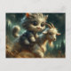 Carte Postale adorable chaton gris chevauchant une chèvre