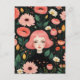 Carte Postale Adorable fille avec cheveux roses dans les fleurs
