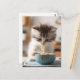 Carte Postale Adorable Fluffy Kitten mangeant des nouilles Ramen