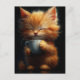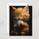 Carte Postale Adorable Ginger Kitty avec un café