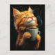 Carte Postale Adorable Ginger Kitty With a Coffee