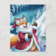 Un mignon renard rouge de Noël habillé d'un costume Père Noël chante dans les montagnes dans un style aquarelle L'art généré par l'IA