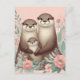 Carte Postale Adorable Otter Boho rose Rose Maman Papa et bébé