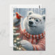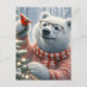 Carte Postale Adorable Ours polaire de Noël et Arbre cardinal
