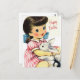 Carte Postale Adorable Retro Happy Pâques fille et lapin