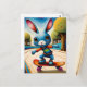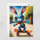 L'IA a produit l'art d'un adorable lapin de planche à roulettes portant une chemise rayée colorée avec des arbres de style storybook dans l'arrière - plan