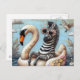 Carte Postale Adorable Zèbre sur un cygne gonflable