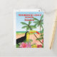 Affiche de voyage de Mammee Bay Beach Jamaïque, d'un oiseau exotique toucan magnifique sur la plage de sable.