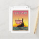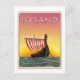 affiche Islande Viking Travel, avec un long bateau sur l'océan au coucher du soleil.