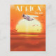 Africa By Air - Une affiche de voyage de style vintage et de dessin animé sur le continent africain pendant un coucher de soleil chaud et humide.