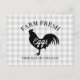 Silhouette de poulet au centre avec le texte "oeufs" sur arrière - plan plaid gris et blanc en vichy. Texte supplémentaire : "Ferme fraîche, libre de gamme, biologique". Superbe pièce décorative pour les thèmes de la ferme, de la campagne et de la campagne.