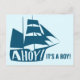 Carte Postale Ahoy c'est un garçon ! Bleu Nautique Thème Bébé Ph