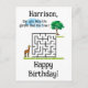 Un puzzle de labyrinthe mignon et amusant d'un girafe qui a besoin d'aide pour trouver l'arbre est imprimé sur des cartes postales personnalisées. Le nom de l'enfant est en haut, avec la question : Pouvez-vous aider le girafe à trouver l'arbre ? Le labyrinthe est représenté avec un nuage bleu au-dessus, un arbre aux multiples nuances de vert et un girafe debout dans l'herbe verte. Joyeux Anniversaire est écrit sous le puzzle. Tout le texte peut être facilement personnalisé. Les jeunes enfants apprécieront la pensée et l'activité supplémentaires qu'ils peuvent faire pour leur anniversaire. Merci de faire vos achats sur MazePuzzles chez Zazzle.