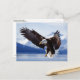 Carte animale montrant un aigle à tête plate en Alaska. L'aigle à tête blanche (Haliaeetus leucocephalus) ou aussi appelé aigle de mer est un oiseau de proie que l'on trouve en Amérique du Nord. Son aire de répartition comprend la majeure partie du Canada et de l'Alaska, tous les États-Unis contigus et le nord du Mexique. Il se trouve près de grands plans d'eau libre avec un approvisionnement alimentaire abondant et des arbres anciens pour la nidification. L'aigle à tête blanche est à la fois l'oiseau national et l'animal national des États-Unis d'Amérique.