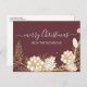 Carte de voeux unique, mignonne et décorative de la saison des Fêtes. Avec de jolis cônes de pin blanc et faux or coloré et des aiguilles arrangement floral design motif sur un arrière - plan rose mauve foncé classique. Avec de la place pour facilement customiser ou personnaliser avec votre nom de famille et le texte de votre choix.