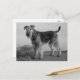 Aww...qui peut résister au visage mignon d'un chiot Airedale ? Cette charmante carte postale présente une photo en noir et blanc d'un chiot Airdale Terrier debout au bord de l'eau. Ce doux chiot Airedale est prêt à vous aider à envoyer des salutations à la famille, les amis et les clients.