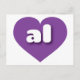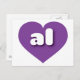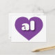 Cette carte postale est dotée d'un coeur violet plein de vitalité qui contient les lettres coques, toutes en gras, blanches, arrondies et inférieures, une abréviation ludique pour Alabama, l'état jaune. Le verso de la carte est vide, en attendant votre texte customisé ou vos sentiments manuscrits. Marée roulante !