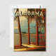 Cette magnifique image vintage moderne est d'Orange Beach en Alabama. Offrant une vue sur l'eau avec deux kayaks au premier plan parmi les arbres de la forêt, ce design de Gulf Shores fait un cadeau fantastique pour n'importe quel Alabamian ou Alabaman.