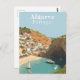 Célébrez le charme décontracté du sud du Portugal avec cette carte postale de voyage vintage d'Algarve. Inspirée d'affiches de voyage européennes classiques, cette illustration rétro capture les plages ensoleillées, les falaises emblématiques et les teintes méditerranéennes qui font de l'Algarve une destination intemporelle. Un cadeau parfait ou un souvenir pour les amateurs de voyage et les collectionneurs d'art côtier.