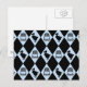Un motif en losange de thimbles et de dodos dans une palette de couleurs noir et bleu clair. Dans le classique Alice's Adventures in Wonderland de Lewis Carroll, le Dodo déclare que tout le monde a gagné la course et que tous doivent avoir des prix, et récompense solennellement Alice son propre pouce.