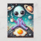 Carte Postale Alien en PJ avec café et oeuf