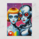 Carte Postale Alien et robot amoureux Arc-en-ciel