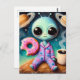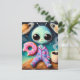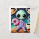 Carte Postale Alien mignon avec café et beignets dans l'espace