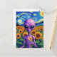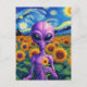 Carte Postale Alien pourpre tient Fleur Van Gogh Tournesol Field