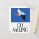 Go Sailing vintage affiche de voyage nautique des années 1980 d'un voilier sur l'océan.