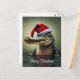 Cet alligator vert porte un chapeau de Père Noël et vous souhaite de bonnes vacances.