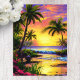 Échappez-vous au paradis avec notre superbe carte postale de la plage tropicale ! Cette carte postale comprend une scène à l'aquarelle, pleine de palmiers et d'un coucher de soleil spectaculaire. Profitez-en !