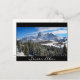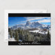 Carte postale avec la montagne des Dolomites du Langkofel (Sassolungo) et des arbres dans la neige sur l'Alpe di Siusi (Alm de Seiser) dans le Tyrol du Sud, Italie en hiver avec une bordure noire et le texte : 'Seiser Alm'.