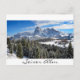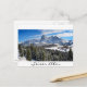 Carte postale avec la montagne des Dolomites du Langkofel (Sassolungo) et des arbres dans la neige sur l'Alpe di Siusi (Alm de Seiser) dans le Tyrol du Sud, Italie en hiver avec une bordure blanche et le texte : 'Seiser Alm'.