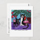 Carte postale d'un tableau de Cindy Pop montrant Angel Dog et Angel Cat partageant un cake à menottes.