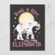 Carte Postale Amour de fille Éléphants Safari Amateur Fleurs Ros