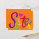 C'est une carte postale amusante couleur orange vif qui dit "Soeur" en lettres cool et colorées ! Parfait pour en envoyer une à votre soeur et lui montrer que vous l'aimez beaucoup !