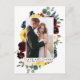 Élégant Aquarelle Florale Bourguignon Rose et Feuillage Mariés Amour et Remerciement Carte de Remerciement de Mariage comprend des roses bourguignon et roses, des fleurs bleues, des tournesols, du feuillage botanique et des feuilles d'eucalyptus.
