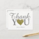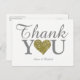 Carte postale mariage "Amour et Merci"... A l'avant : un faux coeur doré avec les mots "merci" et avec vos propres noms sur un arrière - plan blanc, propre et clair... à l'arrière : des mots personnalisés "... pour célébrer notre journée spéciale avec nous"