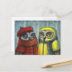 Deux magnifiques hiboux - amoureux de l'école, scène romantique mignonne dans une forêt de bouleaux. D'après une peinture originale au pastel à l'huile de Tanya Bond