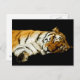 Photo d'un Tigre d'Amour endormi sur un arrière - plan noir. Également connu sous le nom de Tigre de Sibérie, l'Amour est en voie d'extinction dans la nature. Il ne reste que quelques centaines. Le tigre d'Amour s'est éteint en Corée du Sud en 1922, depuis lors des efforts de conservation ont été déployés pour sauver cette espèce. Nos efforts pour sauver cette espèce semblent échouer avec la population de tigres continue de chuter en raison de la chasse et de la perte d'habitat.