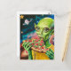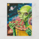 Carte Postale Amusant Alien dans l'espace manger de la pizza